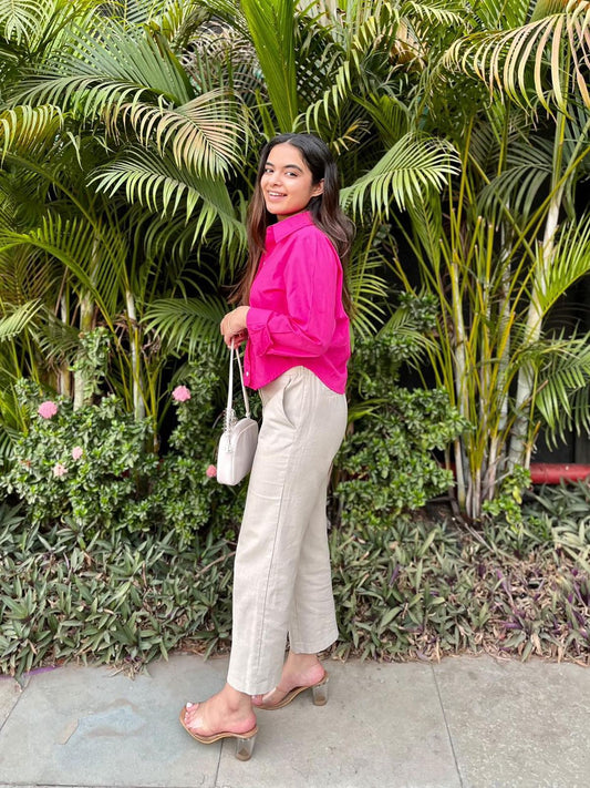 Summer Lovin' Poplin Pant Co-ord- Fuschia Pink