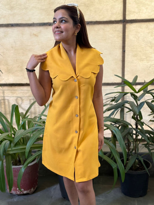DENIM DRESS WITH ASSYMETRICAL COLLAR