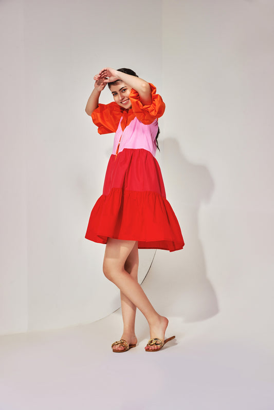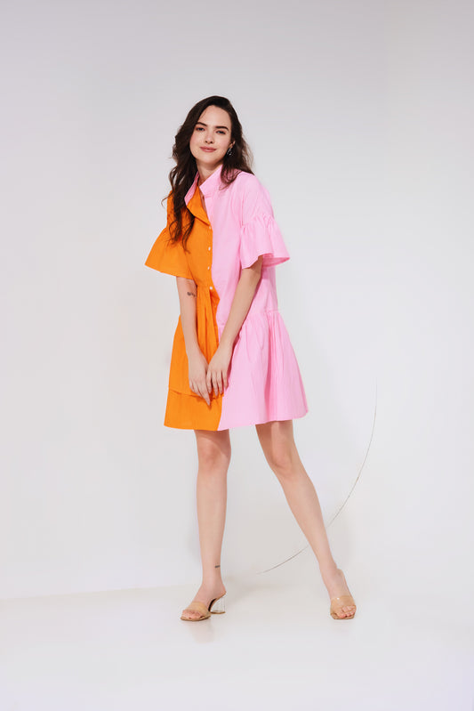 Summer Lovin' Poplin Pant Co-ord- Color Block Orange White