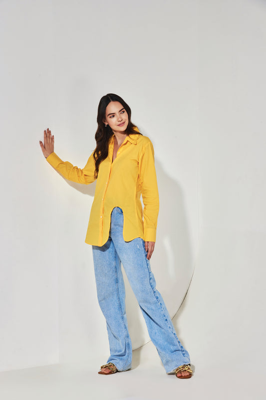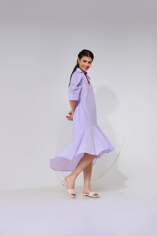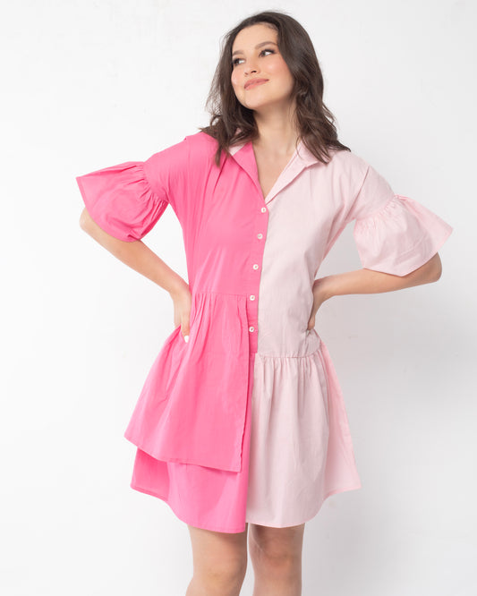 COLLARED BACKLESS SHIRT DRESS - COFFEE