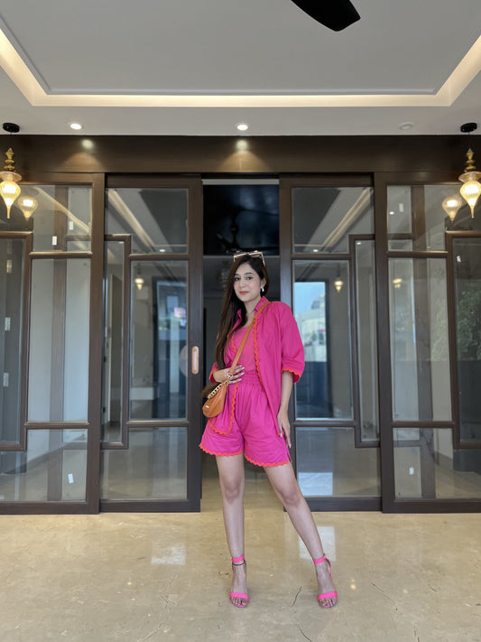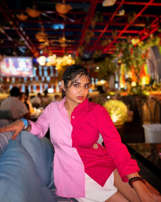 FUSCHIA BLOCK SHIRT BRALETTE DUO