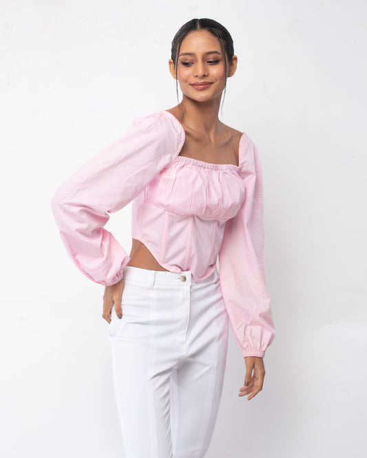 SIDE CUT OUT SHIRT - PINK BLOCK