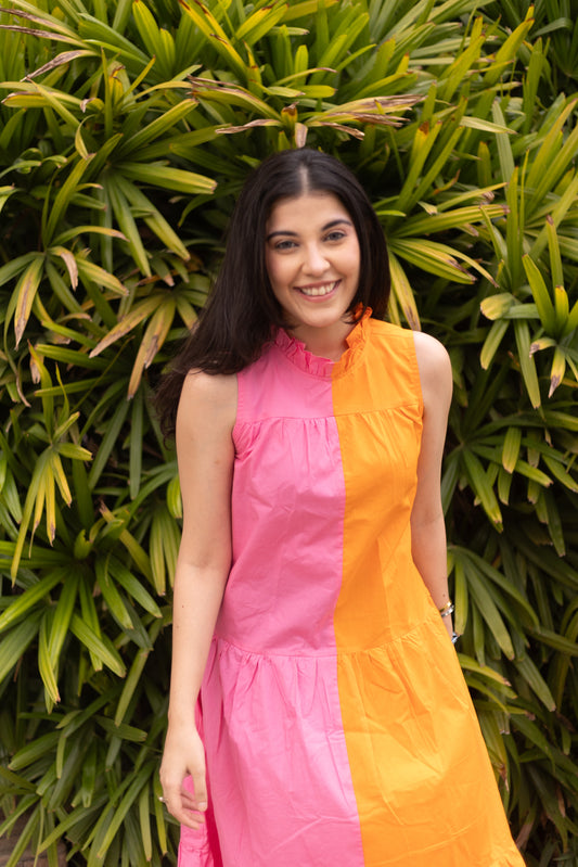 ORANGE BLOCK DRESS
