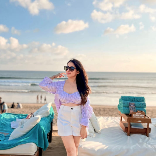 GINGHAM SHIRT/BRALETTE DUO - LILAC