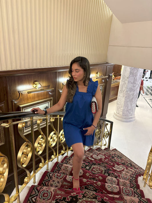 FRILLED STRAPS DRESS - BLUE