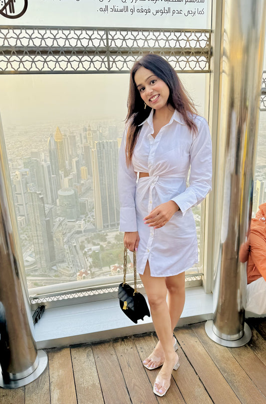 WHITE SIDE CUT KNOTTED DRESS