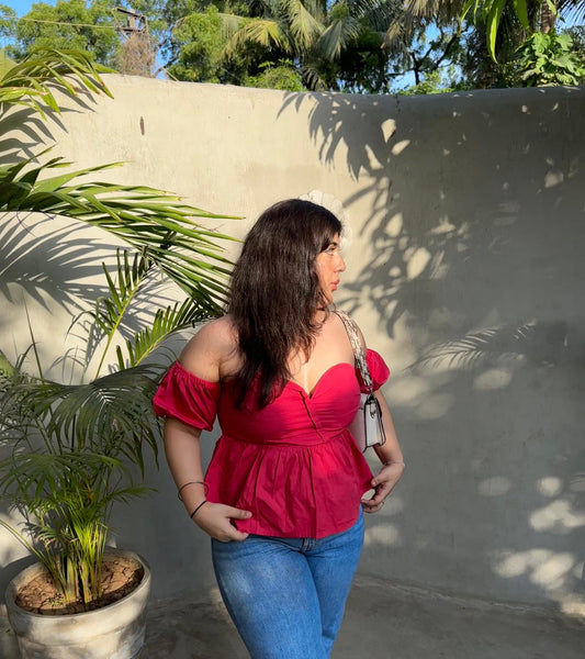 BUSTIER OFF SHOULDER TOP - DARK PINK